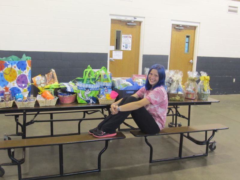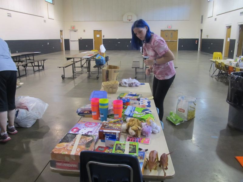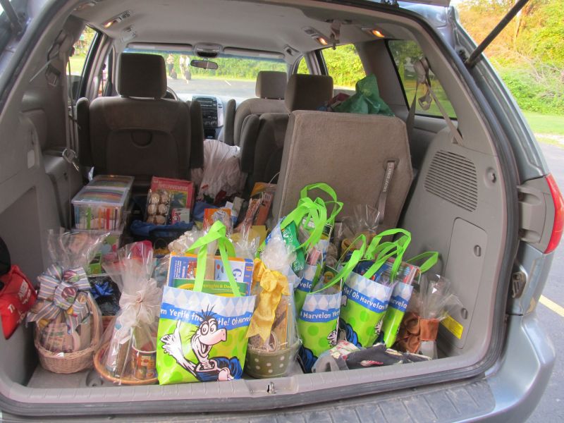 Before I knew it, the actual day of making the gift baskets came. I had the gym set up with tables for donations, baked goods, baskets and places to fill and decorate baskets. I was so surprised when my neighbor showed up with a trunk full of donations and baked goods. That was the start of people bringing donations.