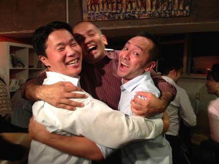 Nipun-san just spent three days in Tokyo, and we are still feeling the ripples of it far and wide. Karma Kitchen organizers from various cities convened a circle to ask deep questions about the gift economy -- and by night time, people were already sharing on Facebook. At another talk, various people were moved to tears and now want to host a Giftivism gathering with Nobel Laureates! A Japanese filmmaker interviewed Nipun-san about a film on gift-economy and by the end, he decided to change his film to be on inner transformation. A Gandhian professor trained 12 hours to join a gathering, an admin couldn't get to attend a talk but came up to him to spontaneously offer a momento from his desk, and after a circle on the last day, people exchanged emails to hold another circle to deepen their understanding of gift-economy ideas. We hosted our first Awakin Tokyo, and another one is already in the works. I was translating the entire time, and its so amazing that even without the power of language, the Japanese people could understand and resonate with ServiceSpace values. Even as we were training to the airport, people had emailed me questions that I asked Nipun-san and recorded on my phone. Below is a photo of a universal language ... that's how we all felt.
