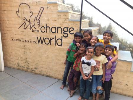 With Nanu ma, who cooked a feast for us. Felt like being fed by our grandmother. In the slums where Manav Sadhna works, magic cooks. Nanu ma is 75. When her husband passed away 11 years back, she decided to gift her land to Manav Sadhna. Jayesh and Viren-bhai refused to accept the gift, as they felt it would be needed by her relatives (she didn't have any children). She then got legal documents on government bond paper, where all her relatives certified that they were willingly supportive of her donation. Jayesh-bhai and Viren-bhai told her to keep the land in her name but have used her space now to start a street school for the children in the slums. The children love to interact with her and she loves them very much.