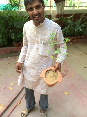 And here's service-hero Suresh Parmar, holding toilet pots with plants in Safai Vidyalaya (Cleanliness School) in Ahmedabad. What a cool way to honor the toilet!