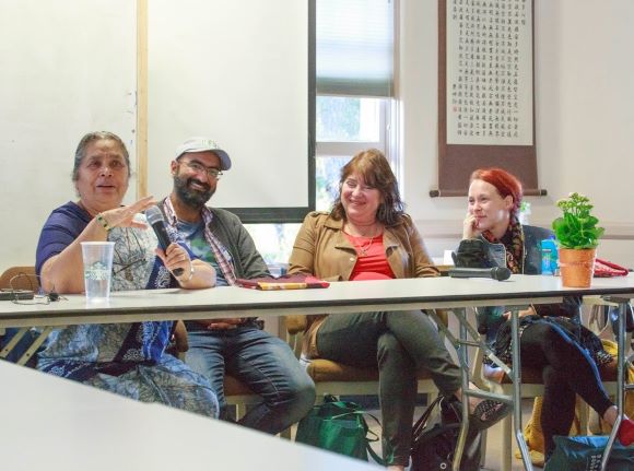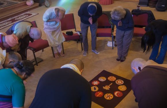 The next day, we held an interfaith circle with folks from more than 8 different faiths. Aryae and Wendy shared a "niggun" (Jewish mystical prayer), Swami Prasannatmananda spoke about finding common ground, Janessa spoke about seeing the other as a brother, as Rev. Heng Sure ended with Dedication of Merit. And we all bowed to the all-religions symbol that Sister Lucy has in all her homes:
