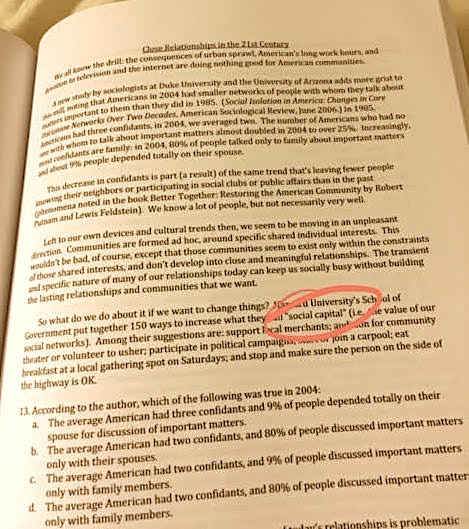 I love that she remembered this!! How cool to see "social capital" and research on "Close Relationships in the 21st Century" mentioned in something as mainstream as an SAT-like book! :)